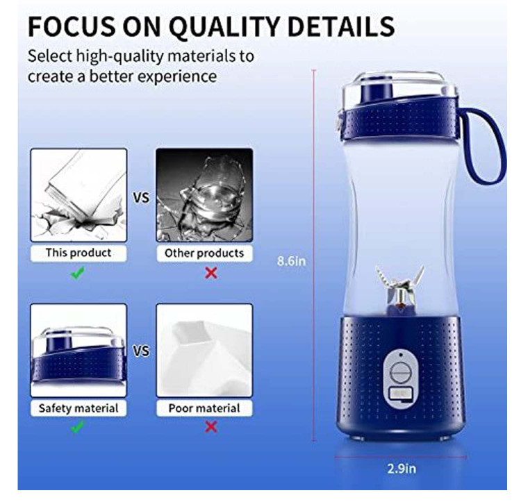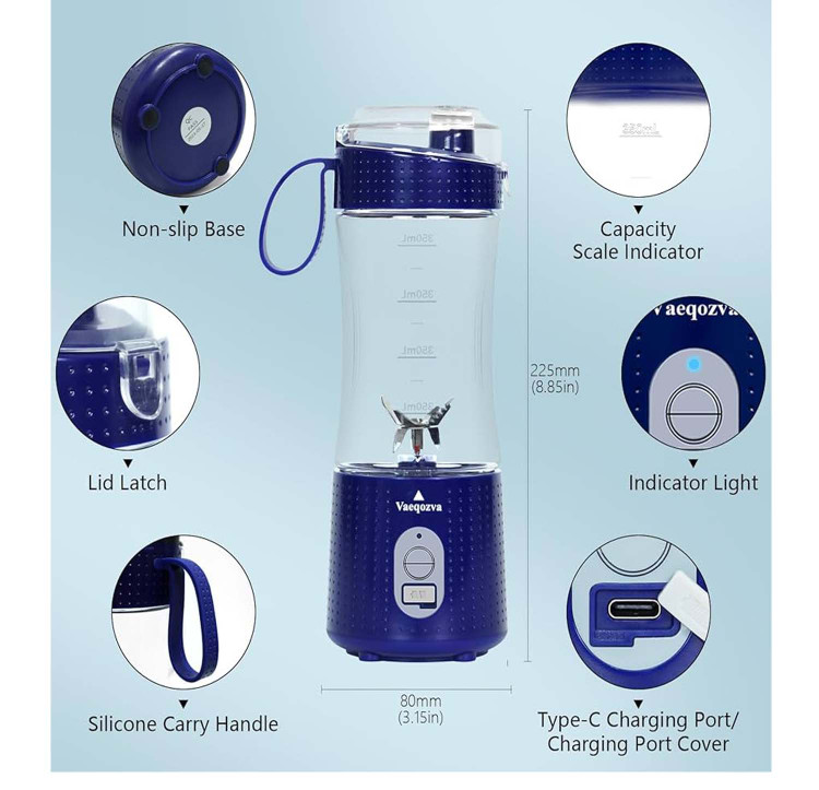 این مخلوطکن با وزن سبک و ابعاد جمعوجور، امکان حمل آسان را فراهم کرده است و برای استفاده در هر مکانی مناسب است.مخزن 500 میلیلیتری دستگاه، به شما اجازه میدهد تا نوشیدنی کافی برای یک یا دو نفر آماده کنید.تیغههای چهارگانه از جنس استیل ضدزنگ 304، عملکردی عالی در خرد کردن یخ، میوهها و سبزیجات دارند و نوشیدنیهایی با بافت نرم و یکنواخت ارائه میدهند.دستگاه دارای باتری لیتیومی با ظرفیت بالا است که با یک بار شارژ کامل، امکان تهیه چندین مرتبه نوشیدنی را فراهم میکند. (مدت زمان شارژ کامل: حدود 3 ساعت)بدنه دستگاه از پلاستیک ABS مقاوم ساخته شده است که علاوه بر دوام بالا، ظاهری زیبا و مدرن به دستگاه میدهد.طراحی درب ضدنشت، از نشت مایعات جلوگیری کرده و امکان حمل دستگاه را بدون نگرانی فراهم میکند.قطعات دستگاه بهراحتی از هم جدا میشوند و قابلیت شستوشوی آسان را برای شما فراهم میکنند.