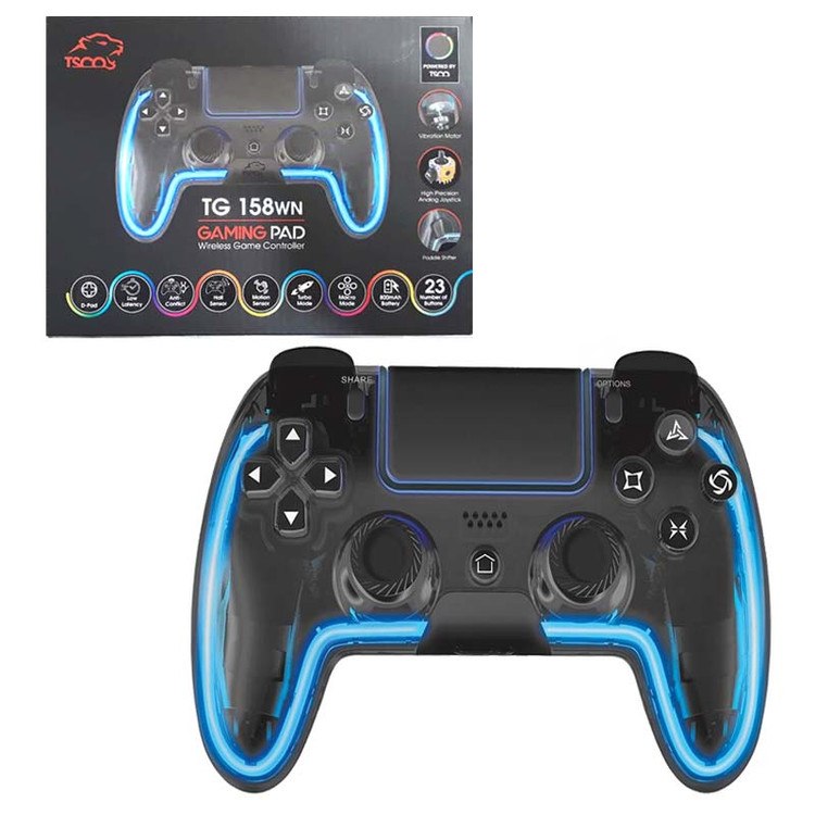 گیم پد تسکو مدل TG 158 WN یک کنترلر بیسیم همهکاره است و دارای دکمهها و بدنه دارای نورپردازی LED هستند که در هنگام استفاده، یک جلوهی نورانی زیبا ایجاد میکنند.دکمههای این گیم پد با فشار فعالسازی 60 گرم به گونهای طراحی شدهاند که با کوچکترین حرکت، واکنش سریعی را به کاربر ارائه دهند. این گیم پد با پلتفرمهای مختلفی از جمله پلیاستیشن 4 (PS4)، پلیاستیشن 3 (PS3)، رایانههای شخصی، دستگاههای اندروید و iOS سازگار است.این بدان معناست که شما میتوانید از این گیم پد برای بازی بر روی انواع دستگاهها بدون نگرانی استفاده کنید.این ویژگی به خصوص برای افرادی که از چندین دستگاه مختلف برای گیمینگ استفاده میکنند، بسیار مفید و کاربردی است.علاوه بر این، TG 158 WN به طور خودکار دستگاههای مختلف را شناسایی کرده و به آنها متصل میشود، که این ویژگی باعث سهولت بیشتر در استفاده و تغییر بین دستگاههای مختلف میشود.یکی از ویژگیهای برجسته این گیم پد، برخورداری از شوک دوگانه است که با ایجاد لرزش در هنگام رویدادهای خاص بازی، تجربهای واقعگرایانهتر و هیجانانگیزتر برای گیمرها فراهم میکند.این لرزشها با دقت و شدت متفاوت بسته به نوع بازی و رویداد در حال وقوع تنظیم میشوند و به شما امکان میدهند تا حس بیشتری از بازیها دریافت کنید.