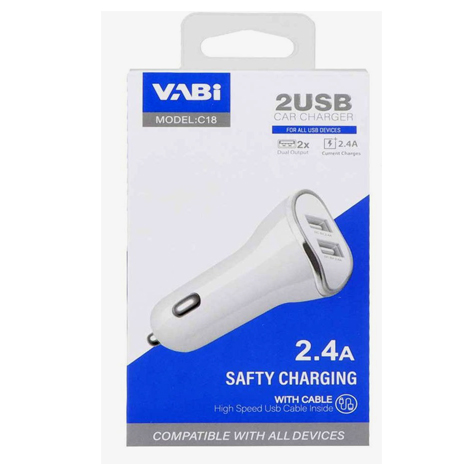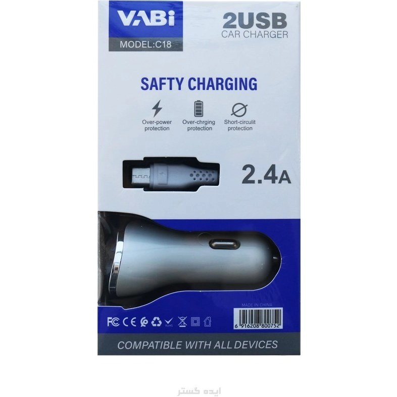 شارژر فندکی فست دو پورت VABI مدل C18 به همراه کابل شارژ Type-C