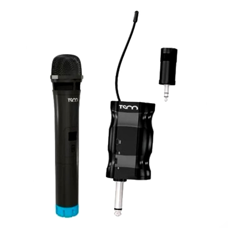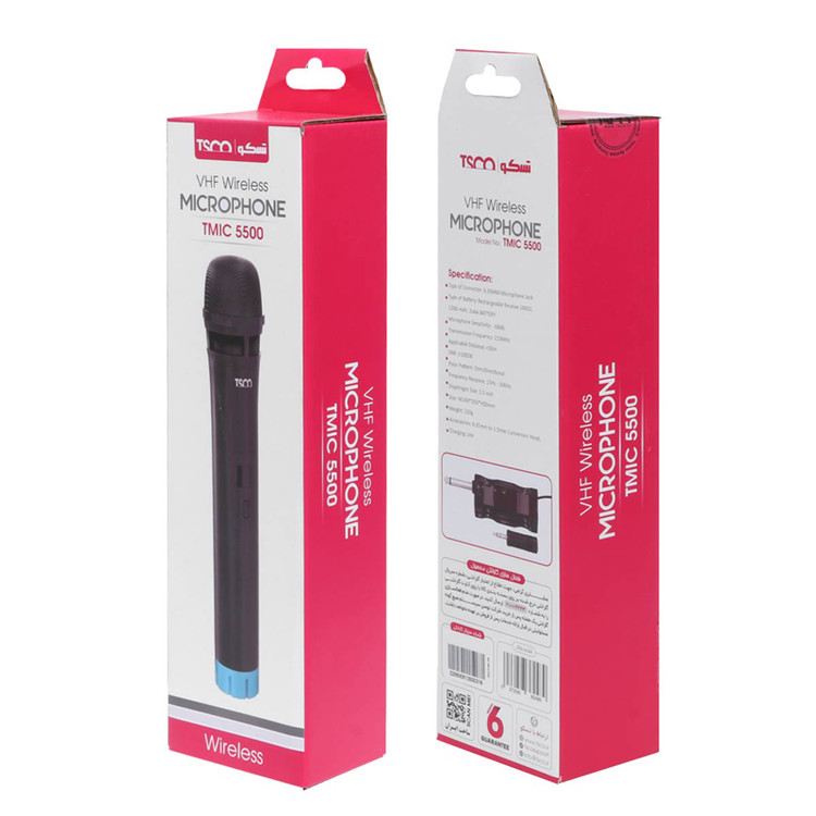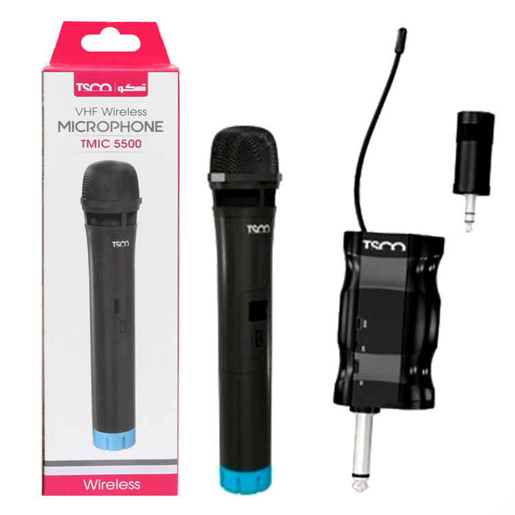 اگر علاقه مند به خوانندگی و نوحه خوانی و حتی خواندن همراه خواننده(کارائوکه)هنگام پخش موسیقی مورد علاقه تان هستید،ما میکروفن بی سیم تسکو مدل TMIC 5500 را به شما پیشنهاد میکنیم.این محصول دارای جک تبدیل 6.5 میلی متری و جک 3.5 میلی متر می باشد که به خروجی میکروفن و همچنین خروجی AUX اسپیکر شما متصل شده و به صورت بلوتوثی می توانید با آن کار کنید و تا فاصله 20 متر را هم پشتیبانی میکند.منبع تغذیه میکروفن 2 عدد باتری قلمی است که داخل پک وجود دارد.