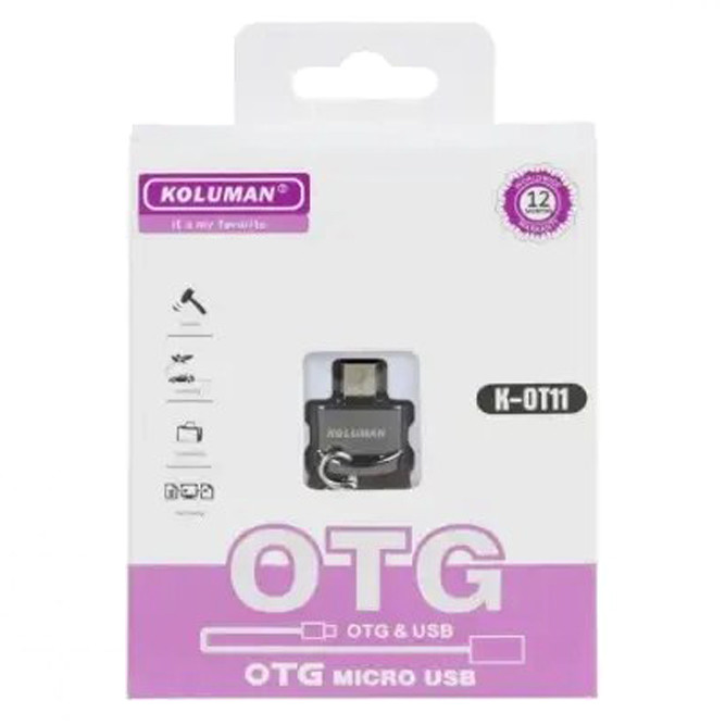 OTG مخفف USB On-The-Go است. اساساً یک ویژگی استاندارد بوده که امکان خواندن اطلاعات USB را روی دستگاه موبایل بدون نیاز به PC و لپ تاپ فراهم میکند. این ابزار در واقع به یک میزبان USB تبدیل میشود. این روزها شیوه زندگی به سمتی پیش میرود که دیوایسهای دست و پاگیر به طور کلی از زندگی روزانه حذف شود، برای مثال با پیشرفت و ظهور تکنولوژیهای جدید این روزها افراد اکثر کارها را تنها با گوشی خود انجام میدهند، بدون اینکه نیاز به کامپیوتر و یا لپتاپ داشته باشند. کابل او تی جی هم در واقع همان طور که از اسمش پیداست به همین منظور طراحی شده است. مبدل OTG microUSB به USB کلومن مدل K-0T11 مناسب برای تمامی دستگاههای مجهز به پورت microUSB با پشتیبانی قابلیت OTG است. شما به یک کابل OTG و یا اتصال OTG نیاز دارید. با کابل otg میتوانید کارهای زیادی انجام دهید، به عنوان مثال، ممکن است درایو فلش USB را به گوشی خود متصل کنید یا از یک کنترلر بازی ویدیویی با دستگاه اندرویدی استفاده کنید.