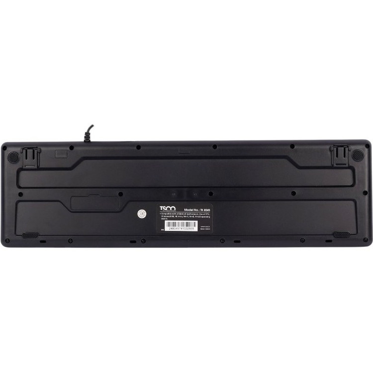 این کیبورد، با ابعاد متناسب و وزن ایدهآل، ضمن ارائه عملکردی بینقص، از خستگی کاربر در استفاده طولانیمدت جلوگیری میکند.سوئیچهای استفادهشده در این کیبورد از نوع ممبران (Membrane Switch) هستند که عملکردی نرم، بیصدا و روان ارائه میدهند.دوام کلیدها تا 10 میلیون ضربه تضمین شده است.از طریق یک کابل باسیم 1.8 متری با درگاه USB به سیستم متصل میشود.کیبورد تسکو مدل TK 8045 با ابعاد 428x124x16 میلیمتر و وزن 442 گرم طراحی شده است که استفاده از آن را برای انواع محیطها، از اداری گرفته تا خانگی، راحت و مناسب میسازد.حروف حکاکیشده روی کلیدهای این کیبورد از کیفیت بالایی برخوردارند و حتی پس از استفاده طولانیمدت، خوانایی خود را حفظ میکنند. کیبورد تسکو مدل TK 8045 دارای 104 کلید اصلی می باشد.طراحی ارگونومیک این کیبورد با فاصله جزیرهای، تجربه تایپ را بهبود بخشیده و به کاهش احتمال اشتباهات تایپی کمک می کند.فاصله مناسب بین کلیدها و زاویه مطلوب کیبورد، به کاربر اجازه میدهد بدون احساس ناراحتی برای ساعتها از دستگاه استفاده کند.