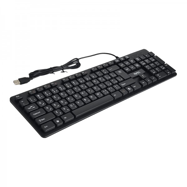 کاربری کیبورد: عمومی ابعاد: 428x124x16 میلیمتر وزن: 442 گرم جنس بدنه: پلاستیک نوع اتصال: با سیم فرم فاکتور: Full Size دارای حروف حک شده فارسی اتصال Plug & Play نوع سوییچ کیبورد: ممبران نوع رابط: USB تعداد کلید: 104 عدد عمر یا ضربهپذیری کلیدها: 10 میلیون سیستم عاملهای سازگار Windows/Linux/Android/Unix/Mac OS منبع تغذیه: USB طول کابل: 180 سانتی متر