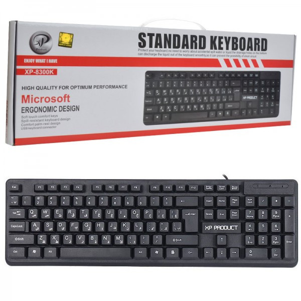 کیبورد یا صفحه کلید را می توان کاربردی ترین لوازم جانبی رایانه نام ببریم.کیبوردها با توجه به نوع استفاده و طراحی که دارند به انواع مختلف تقسیم می شوند.کیبورد ها معمولا به صورت باسیم و بی سیم به رایانه متصل می شوند و شما را در انجام فعالیت های رایانه ای همراهی می کنند.کیبورد مدل 8300 یک محصول بسیار زیبا از شرکت ایکس پی است که از طریق درگاه USB به رایانه شما متصل می شود.این کیبورد دارای برچسب فارسی میباشد که هنگام استفاده از آن احساس راحتی خواهید کرد