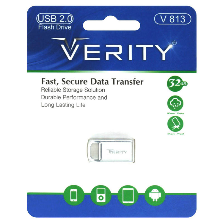 فلش 32 گیگ وریتی Verity V 813 از پورت USB 2.0 پشتیبانی می کند و می تواند تا حداکثر سرعت 480 مگابیت بر ثانیه اطلاعات را انتقال دهد و مناسب برای ذخیره سازی و انتقال اطلاعاتی مانند موسیقی، فیلم، عکس و … می باشد. این مدل فلش مموری کوچک و سبک بوده و دارای یک شیار برای اتصال به جاکلیدی می باشد که مانع گم شدن آن می شود. برند verity توانسته با تولید فلش های باکیفیت و قیمت مناسب تمام سلیقه ها را پوشش دهد و سهم خوبی از بازار را تصاحب کند.