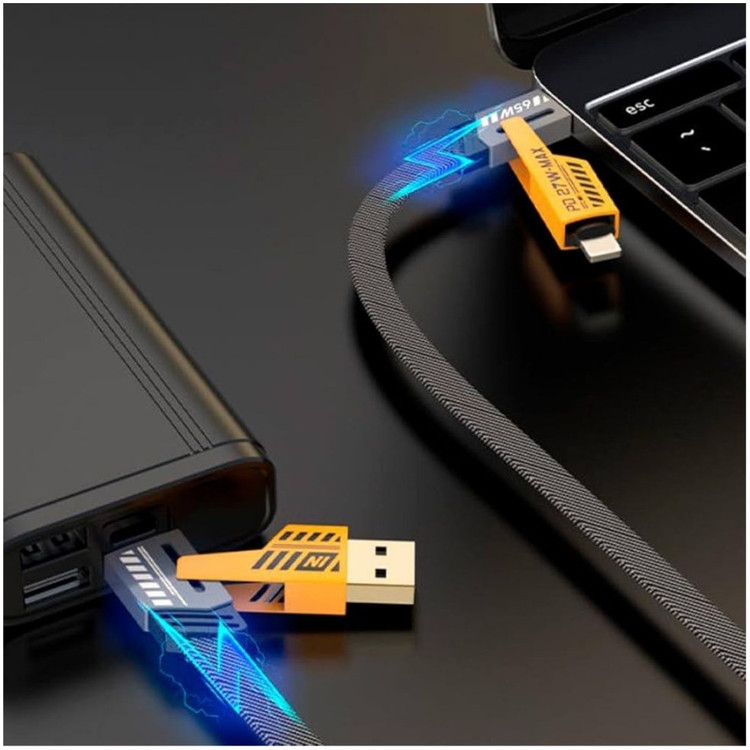 - 4 کانکتور کاربردی در یک کابل: Lightning (آیفون)، Type-C، Micro USB و USB برای شارژ و انتقال دیتا