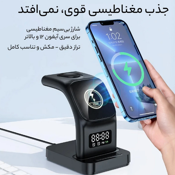 - دارای چراغ خواب شارژ گوشی ، ساعت هوشمند و ایرپادز