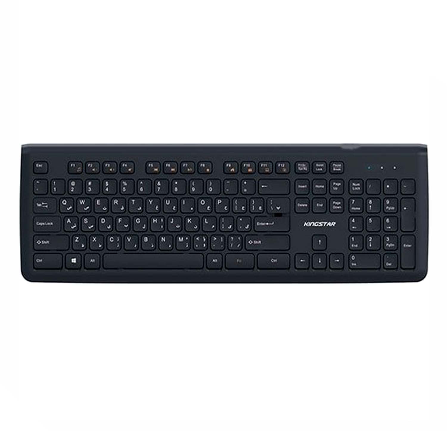 کیبورد کینگ استار مدل kb75 از نوع بی سیم میباشد و از طریق دانگل USB به کامپیوتر متصل میشود. این کیبورد دارای 103 کلید برای انجام فعالیتهای کامپیوتری است. همچنین کیبورد kb75 دارای 20 کلید میانبر به منظور انجام سریعتر کارهاست که عبارتند از Music, Volume +-, Nex Track, Pre. Track, Play/Pause, Stop, Web Home, email, My Computer, Favorite. کیبورد کینگ استار مدل kb75 برای استفادههای روزمره مناسب میباشد. از دیگر ویژگیهای این کیبورد محصول کمپانی کینگ استار، طراحی کلیدها به گونهای که امکان تایپ کردن در مدت زمانی طولانی را فراهم می کند، دسترسی راحت به تمامی کلید های کاربردی، طراحی نرم و سایلنت کلید ها، با دوام و دارای کلید های مات میباشد.