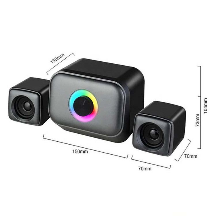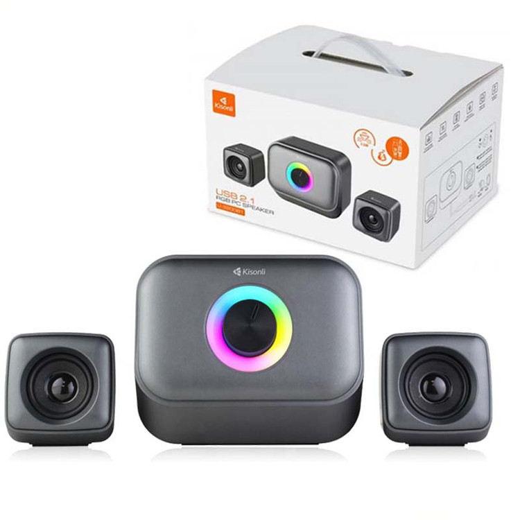 اسپیکر سه تکه بلوتوثی و باسیم کیسونلی مدل U-3200BT یک محصول مقرون به صرفه با صدای واضح و پرقدرت می باشد که برای انواع لپ تاپ، کامپیوتر و گوشی موبایل مناسب می باشد. جنس به کار رفته در ساخت این اسپیکر پلاستیک فشرده و باکیفیت می باشد که در قسمت جلویی ساب ووفر آن نورپردازی RGB در 7 رنگ متحرک وجود دارد که در محیط اتاق و روی میز کار زیبایی آن را دوچندان می کند. اسپیکر کیسونلی U-3200BT برای گیمرها و افرادی که تمایل به داشتن طراحی مدرن هستند کارایی عالی دارد. به سبب داشتن اندازه جمع و جور، این محصول روی میز کار فضای زیادی را اشغال نمی کند و دستگیر نمی باشد. این اسپیکر یک سیستم صوتی 2.1 کاناله می باشد که یک ساب ووفر به همراه دو عدد اسپیکر جانبی صدای بسیار خوبی را ارائه می دهد. اسپیکر بلوتوثی کیسونلی U-3200BT از توان خروجی کلی 5W+4W*2 بهره می برد که صدایی واضح و با بیس مناسبی دارد.منبع تغذیه اسپیکر بلوتوثی و باسیم کیسونلی مدل U-3200BT از طریق درگاه USB می باشد که می توانید آن را به لپ تاپ، رایانه و یا یک پاوربانک متصل کرده و از آن استفاده کنید.
