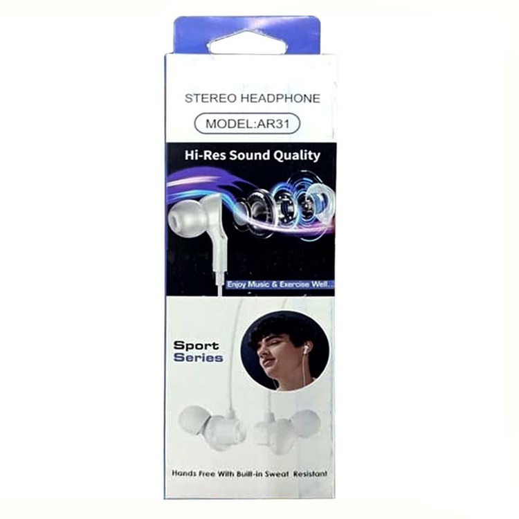 ایرفون «AR-31» جزو هدفونهای توگوشی یا ایرفون (Earphone) بهشمار میرود. به منظور استفاده از این محصول کافی است جک ایرفون 3.5 میلیمتری آن را به گوشی خود متصل کرده و از تجربه گوش دادن به موسیقی لذت ببرید؛ با استفاده از این محصول به راحتی میتوانید به تماس های تلفنی خود پاسخ دهید و همچنین با استفاده از طول کابل 1.2 متری این محصول، استفاده از آن آسانتر شده و میتوانید به راحتی گوشی موبایل خود را درون جیب و یا کیف خود قرار دهید.