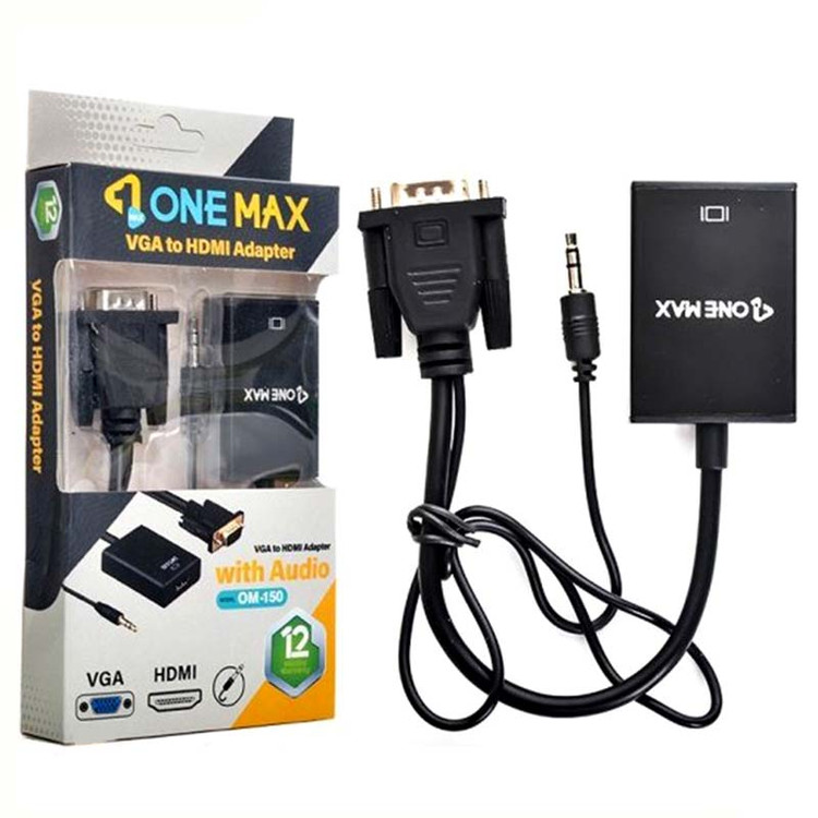 تبدیل VGA به HDMI وان مکس مدل OM-150 همراه با کابل صدا و Microusb مدل OM-150 یک مبدل بسیار کارآمد.طول 20 سانتی متر است که با استفاده از آن می توانید تصاویر فیلم یا بازی که میخواهید را از کامپیوتر یا لپتاپ. با رابط VGA بر روی نمایشگر مورد نظر با رابط HDMI مانند پروژکتور تلویزیون و… ببینید. تبدیل VGA به HDMI برند وان مکس (ONE MAX) دارای ورودی VGA و جک 3.5 میلیمتری (AUX) و خروجی HDMI است.برای اتصال لوازم قدیمی نیز به لب تاپ ها، کامپیوتر ها و تلوزیون های جدید بسیار کاربرد دارد. این تبدیل از رزولیشن 1920P و 1080P پشتیبانی می کند و بهترین کیفیت تصویر و صدا رو به شما ارائه میدهد.این محصول همراه با یک کابل برای تامین برق و یک کابل برای انتقال صدا عرضه می شود. نصب ساده و بدون نیاز به درایور طراحی کوچیک و جابه جایی راحت از ویژگی های این محصول است.