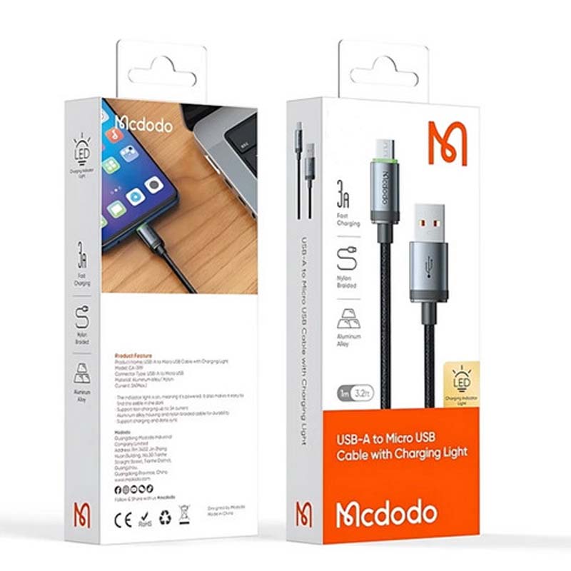 کابل Mcdodo CA_399 با طول 100 سانتی متر و حداکثر شدت جریان 3 آمپر با سیمی از جنس نایلون بافته شده انتخاب مناسبی برای کسانی است که برای محصولاتی مثل گوشی، پاوربانک و اسپیکر نیاز به یک کابل میکرو دارند. کابل مک دودو CA_399 از PVC و نایلون بافته شده ساخته شده است که دارای شارژ سریع و انتقال داده می باشد. سیم آن قابلیت خمش تا 30000 دفعه را دارد و در برابر گره خوردن، کشش و سایش مقاوم است. کانکتور کابل Mcdodo از جنس آلیاژ آلومینیوم به صورت پله ای ساخت شده است تا حین استفاده گوشی با قاب هم مشکلی برای اتصال نداشته باشید و به راحتی وصل شود. طول سیم کابل مک دودو برابر با 100 سانتی متر است.کابل Mcdodo CA_399 دارای هسته مس ضخیم است و با پشتیبانی از قابلیت فست شارژ، حداکثر شدت جریان عبوری 3 آمپر ارائه می دهد و انتخاب مناسبی برای کسانی است که بخواهند شارژ سریع داشته باشند.کابل مک دودو CA_399 برای انتقال دیتا نیز مناسب است و می تواند با استاندارد USB 2.0 دیتا را انتقال بدهد. این کابل گرم نمی شود و ایمنی شما و گوشی شما را حین شارژ تامین می کند.