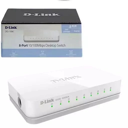 سوئیچ 8 پورت دی لینک (D-Link) مدل DES-1008C با گارانتی 36 الماس رایان ایرانیان