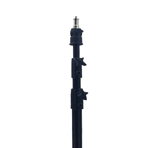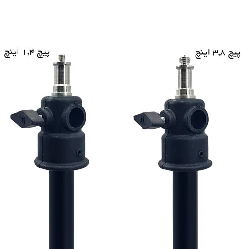 سه پايه فلزی تنظیم ارتفاع 260 سانتی L260 نسبت به دیگر سه پایه های موجود در بازار از مقاومت بالایی برخوردار هست و تحمل وزن بالایی دارد. از این سه پایه بیشتر در آتلیه ها برای ثابت نگه داشتن نورها استفاده می شود. این سه پایه نور ساخته شده از آلومینیوم می باشد و استحکام بالایی دارد. شما با خیال راحت می توانید نورهای ثابت یا دیگر تجهیزاتی که وزن بالایی دارند را بر روی این سه پایه قراردهید. در ادامه شما را با دیگر امکانات این سه پایه نور آشنا خواهیم کرد. سری این محصول قابلیت چرخش و تنظیم دارد و شما میتوانید حتی عمود بر زمین نیز از محصول استفاده کنید.از ویژگی های دیگر این سه پایه این است که قطعات یدکی آن توسط شرکت سازنده به صورت جداگانه به فروش می رسد و در صورتی که آسیبی به قطعات وارد شد قطعات یدکی این کالا را میتوانید جدا خریداری کنید. این سه پایه نور ایده آل برای نورپردازی، عکاسی صنعتی تبلیغاتی و پرتره و مدلینگ می باشد. سه پايه فلزی تنظیم ارتفاع 260 سانتی L260 قابلیت تنظیم ارتفاع دارد و شما می توانید متناسب با نیاز خود ارتفاع سه پایه را تنظیم کنید. حداقل ارتفاع این محصول 110 سانتی متر و حداکثر ارتفاع 260 سانتی متر می باشد. برای اینکه شما بتوانید تجهیزات مختلفی را بر روی این سه پایه متصل کنید نیاز به یک سر سه پایه با پیچ 1.4 اینچ و 3.8 اینچ دارید. همانطور که در تصویر زیر مشاهده می کنید ما بر روی این محصول یک عدد سر سه پایه فلزی که یک طرف آن دارای پیچ 1.4 اینچ و طرف دیگر آن دارای پیچ 3.8 اینچ هست برای شما قرارداده ایم. جنس سر سه پایه ی همراه این محصول فلزی می باشد و از مقاومت بالایی برخوردار است، برای اینکه شما بتوانید این سر سه پایه را به این محصول متصل کنید یک عدد پیچ در قسمت بالای محصول تعبیه شده است که به کمک آن می توانید این سر سه پایه را به این محصول متصل کنید. همامطور که در تصویر زیر مشاهده می کنید این سه پایه دو پیچ برای تنظیم ارتفاع دارد که شما می توانید ارتفاع سه پایه را بسته به نیاز خود تنظیم کنید.