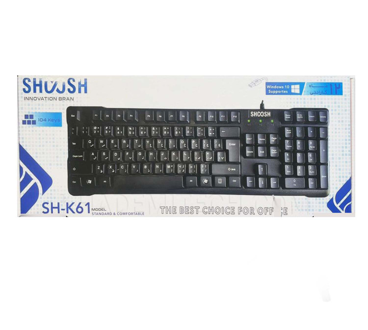 کیبورد باسیم شوش مدل SHOOSH SH-K61 یک گزینه اقتصادی و کاربردی برای استفاده روزمره در محیطهای اداری، خانگی یا آموزشی است. این کیبورد با طراحی استاندارد 104 کلیدی، شامل کلیدهای عددی، عملکردی و میانبر، تایپ راحت و دقیق را برای کاربران فراهم میکند. جنس بدنه از پلاستیک ABS مقاوم ساخته شده که در برابر ضربه و سایش دوام خوبی دارد. طول کابل 150 سانتیمتری آن نیز آزادی عمل مناسبی در قرارگیری روی میز کار ایجاد میکند. طول عمر کلیدها تا 8 میلیون بار فشار، نشاندهندهی کیفیت ساخت قابل قبول این محصول است. ابعاد 446×170×25 میلیمتر، طراحی جمعوجور و مناسبی را ارائه میدهد که برای میزهای کوچک نیز مناسب است.